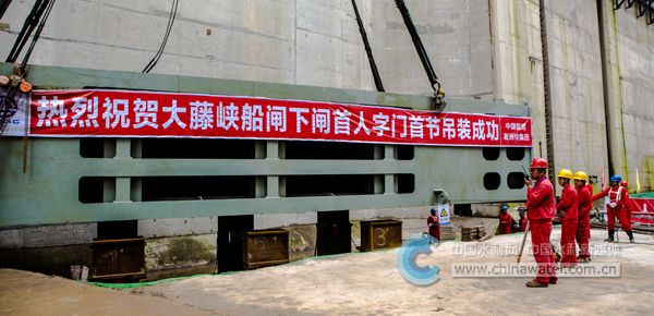 大藤峡水利枢纽船闸下闸首人字门启动安装