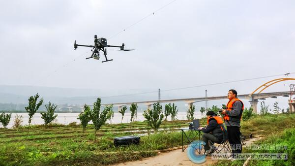 水利部黄河水利委员会水文局树牢底线思维、极限思维,全力以赴做好黄河2025年第1号洪水水文测报工作。水文局加大水文现代化仪器设备应用力度,在提高测报效率的同时有效保障职工安全,为流域防汛调度提供坚实水文支撑。图为10月13日,潼关水文站职工采用无人机搭载雷达测速仪开展洪水测验。(本报通讯员 段雯/文 陈毓莹/摄)