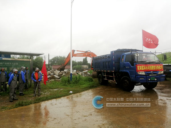 大汛当前,芜湖富林防汛义务队迅速组织40名工程技术人员参与到防汛抢险中来,调配了挖掘机、铲车、运输车等机械设备运输车辆共计30台套。为了解决当前防汛石料供应难的问题该公司及时从外地运防汛石料600余吨,就近堆放在险工险段附近,以便随时投入防汛抢险。在该县十三连圩、新联圩堤防,抢险队员们开展清障除障、巡查险、处理滑坡、运输石料等防汛除险工作。