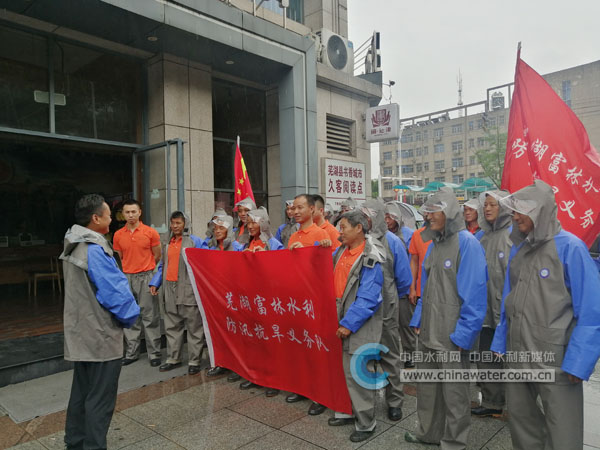 在六郎镇周圩村防汛责任段,有一支抢险队伍冲锋在前。队员们身披雨衣、脚穿胶鞋、手持铁锹,全力参与防汛工作。这是县首支社会化防汛抢险专业队伍——芜湖富林水利工程有限公司防汛抗旱义务队。