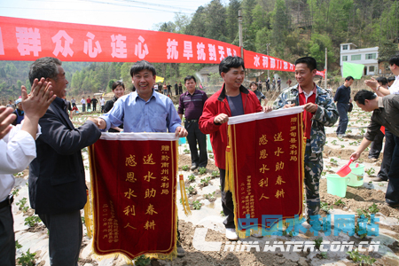 受益群众给州、县水利局送锦旗(金廷正_摄)