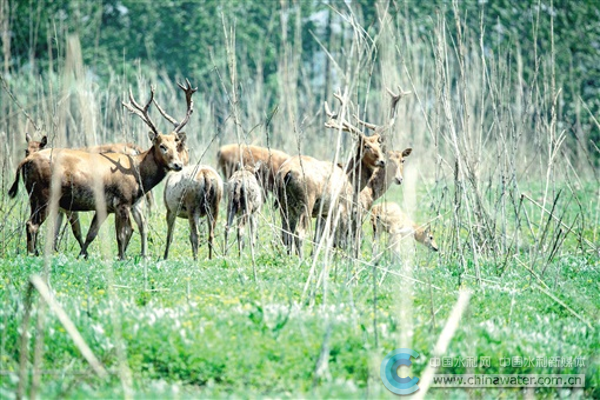 洞庭湖畔,麋鹿成群  (杨一九 摄)