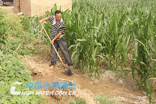 8月3日午饭过后,陕西省渭南市蒲城县金星村村民李军荣扛起铁锨,沿着自家玉米地旁的灌溉农渠查看行水情况。估摸着水快到他的地里了,他挥起铁锨在田埂上开了一个豁口。没过一会儿,沿着农渠而来的水流便通过豁口,流进李军荣的玉米地,和绿油油的玉米苗们来了个亲密接触。