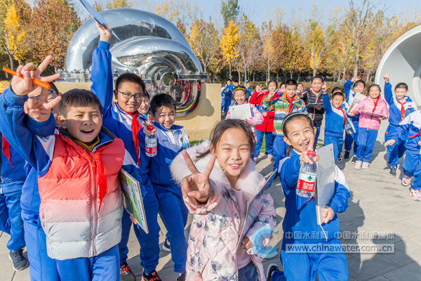 11月8日,在北京惠南庄泵站管理处,面对“南水北调工程怎么样”的问题,刚刚参观完泵站的孩子们不约而同地做出了胜利的手势