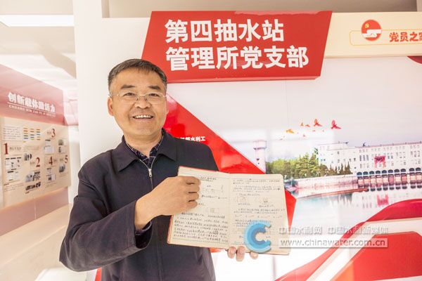 江都水利枢纽第四抽水站管理所所长张宇介绍有着42年历史的工程运行日志