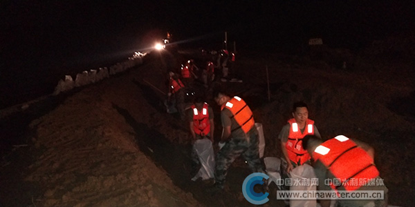 下午5时,抢险队员到达现场,及时配合抢险专业人员会商抢护方案,按照“预防为主、水涨堤高”的原则,迅速将抢险队员划分小组,一时间,修土堤、装土袋、铺土工布、背土袋平整土工布。争分夺秒,人机配合,整个抢护工作有条不紊地进行,经过近七个小时的艰苦奋战,晚上0时,一座长216米、高1米、顶宽1米的子堤抢修完成。