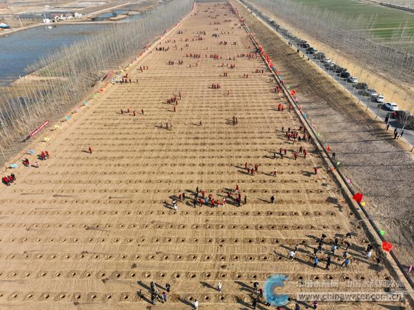 经过3个小时的挥汗奋战,一株株绿植深深扎根泥土,300余棵杨树在春风里昂然挺立,焕发出勃勃生机。