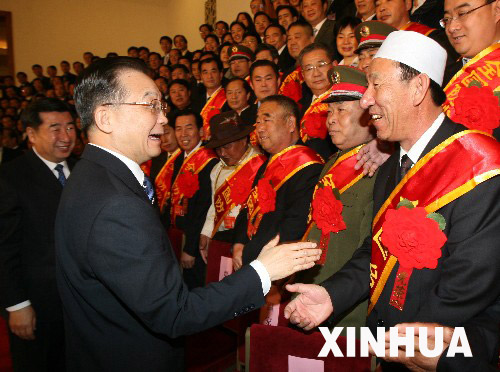 温家宝会见全国防沙治沙大会代表时强调