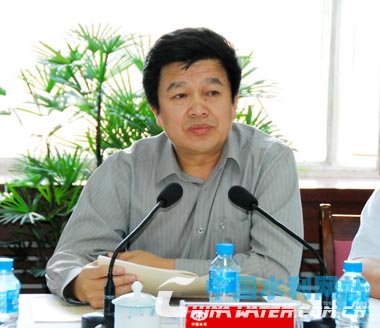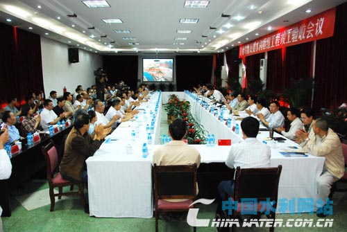 水利部总工、工程验收组组长汪洪主持讨论《新疆乌鲁瓦提水利枢纽工程竣工验收鉴定书》