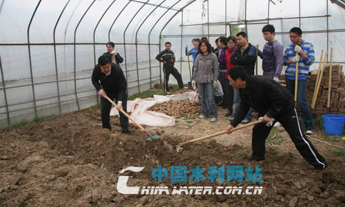 中国水利网站讯 (记者 蔡媛媛 通讯员 相杨)4月19日,在党委书记、主任李仰斌的带领下,中心的40余位青年一早就兴致勃勃地奔赴位于顺义的水利部节水灌溉示范基地。这一行,大家不仅想急于知道上次种植的树苗是否成活?还要体验一下亲自下地种植土豆的过程。党委副书记、副主任李琪,党委委员、总工程师韩振中参加了本次活动。