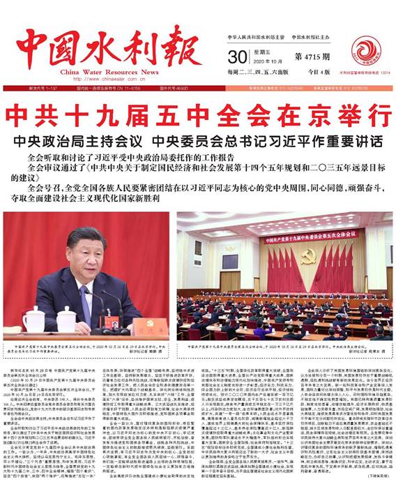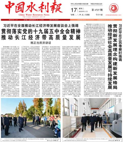 2020年11月17日,中国水利报头版刊发习近平在全面推动长江经济带发展座谈会上讲话精神。