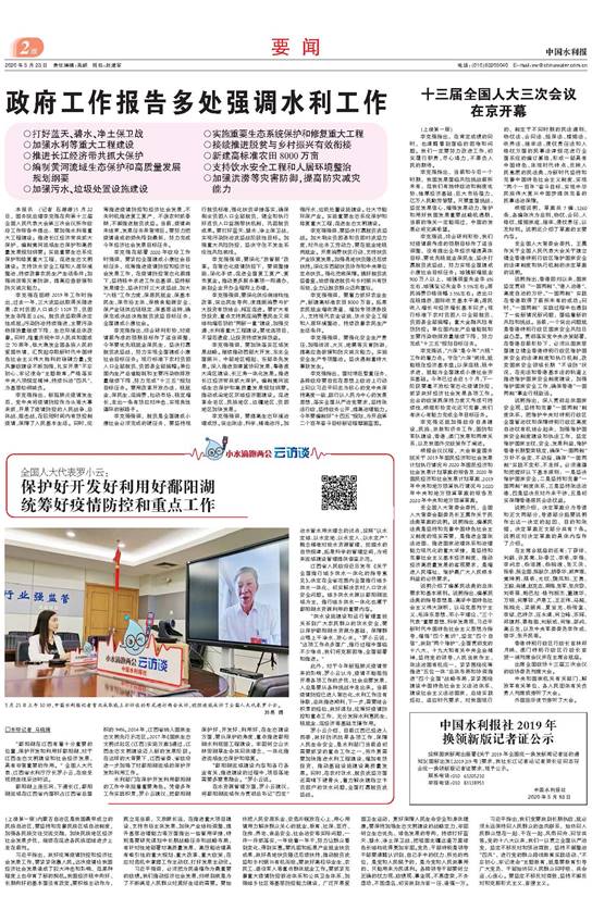 《中国水利报》以宣传大政方针,为全国水利系统广大职工、广大读者提供水利政策信息服务,搭建信息交流平台。