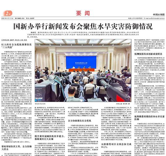 2020年6月12日,整版刊发国新办新闻发布会聚焦水旱灾害防御情况,回应社会关切