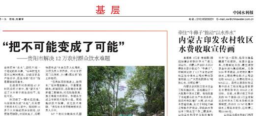2020年6月23日,中国水利报基层版报道内蒙古印发农村牧区水费收取宣传画相关信息