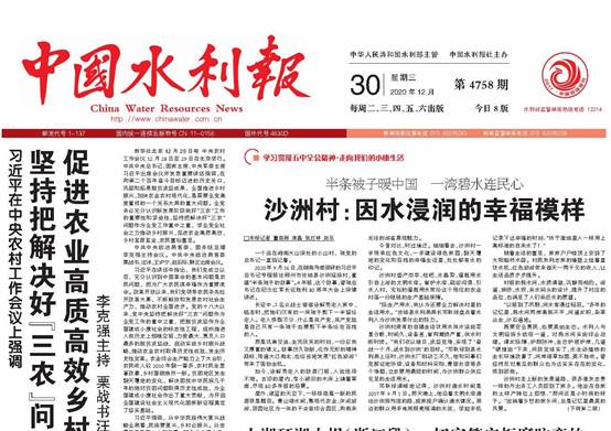 2020年12月30日,头版刊发《半条被子暖中国 一湾碧水连民心 沙洲村:因水浸润的幸福模样》,讲述脱贫攻坚的故事