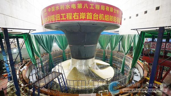 大藤峡枢纽右岸首台发电机组转轮成功吊装