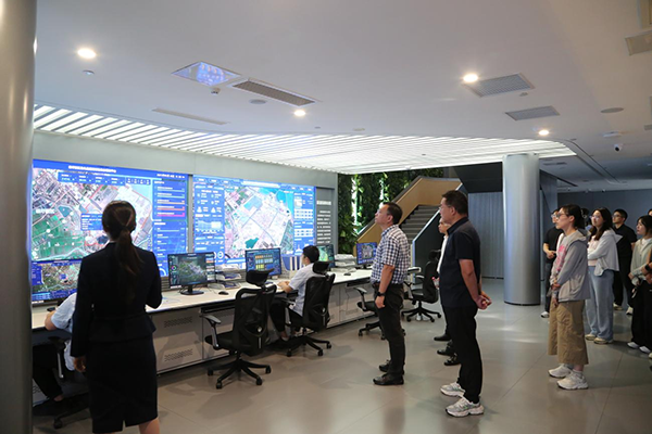 连云港分局研学团队一行实地参观了应急备用水源地、石化产业基地运管服务中心、工业废水综合治理中心、研发中心等地,深入了解水处理领域先进技术和创新实践。实地参观了香河湖水源地,了解新区供水调蓄能力,结合生态湿地净化与智能调蓄系统建设,双方就动态监测上游来水水质水量、调水沿线工程运行状态,保障新区供水安全等话题进行交流探讨。在石化产业基地运管服务中心,大家通过全息投影沉浸式体验徐圩新区发展脉络,看到了从水源地到水龙头的全流程数字化管控。