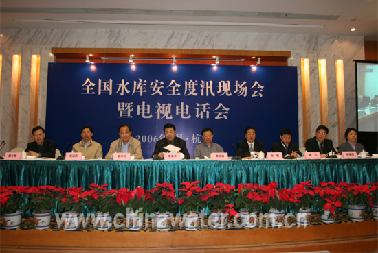 本站4月25日讯 (记者 王磊 )全国水库安全度汛现场会暨电视电话会今天在杭州召开。国家防总副总指挥、水利部部长汪恕诚在北京会场通过视频异地会商系统部署了全国水库安全度汛工作。国家防总秘书长、水利部副部长鄂竟平主持会议。会议观看了水库垮坝警示短片,浙江、福建、江西、山东四省介绍水库安全度汛经验。