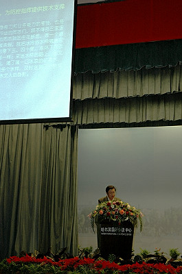 黑龙江省水利厅副厅长王铁正在介绍黑龙江水文工作情况