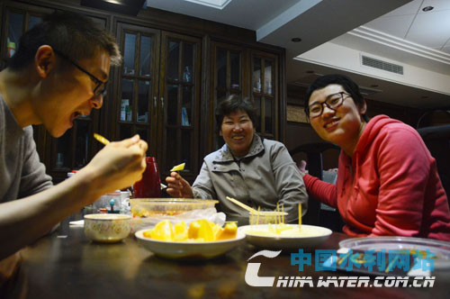 这是在马其顿工作一年后,水电七局马其顿KO项目部的李超群、何依夫妻二人首次回家。妈妈准备了超大份的冒菜,切好的橙子和梨摆在盘里,看着女儿和女婿狼吞虎咽地吃着,尝到了久违的四川味道,幸福就是如此简单。妈妈一直在旁边笑着,看着,仿佛要把这一年的思念都融化在饭菜里。(供稿:中国水利水电第七工程局)