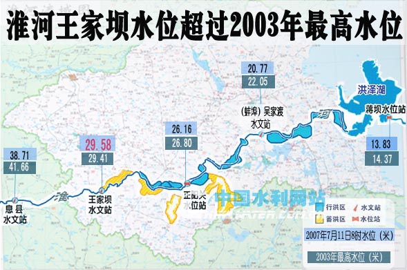 本站7月11日讯 记者今天从水文局获悉,今天凌晨4时到7时,王家坝水位曾一直保持在29.59米的高度,超过2003年最高水位29.41米。8时,王家坝水位回落至29.58米。