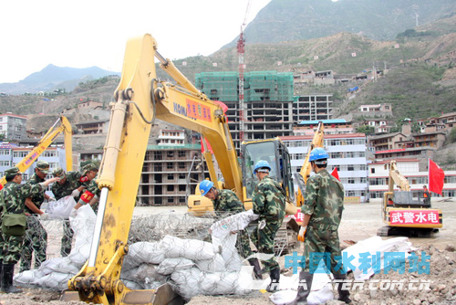中国水利网站讯 8月16日,记者在舟曲泥石流现场看到,武警水电部队开始使用黄河防总紧急调拨的铅丝笼铺设白龙江堰塞体开挖通道。第一个铅丝笼正在紧张填灌沙石包。据悉,目前解除舟曲白龙江堰塞体的总体方案基本确定,挖、爆、冲将作为主要施工方案实施。