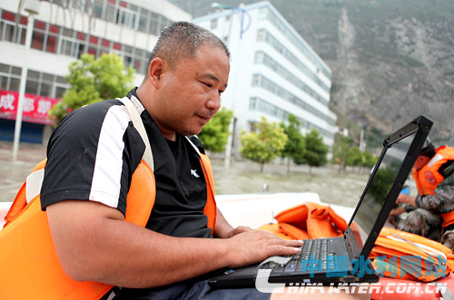 记者在他们的住地兼办公室看到,虽然各方面物资略显简陋,但是一张张床铺和办公桌摆放整齐。“12号晚上,我们才搬到了现在的居住点。”牛最荣说,“我们在这里设置了临时工作场所,一面办公,一面进行水文数据计算。几天前,长江委水文局21名工作人员也到了,大部分就住在坡上不远处,有几位同志和我们住在一起,还有少数同志在上下游的监测点驻扎,协同开展水位和流量测量。现在我们是一家人,目前水文数据实现了全面共享。”