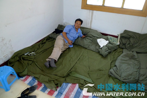 回忆几天来的经历,牛最荣感慨地说:“这些工作能够在困境中迅速、顺利开展,得益于这群让人感动的水文职工。”他向记者讲述了舟曲水文人的一个故事。8月8日凌晨,灾难发生的那一刻,舟曲城关大桥水文站的几位同志迅速撤离时,没有人想到先去拿自己的东西,有的人甚至连外衣都没穿,却带出来尽可能多的水文资料。甘肃水文人的生活情况,同样令人感动。队伍到达的第一天,没有住的地方,忙碌了一天后,他们在车上、水泥地上睡了一晚。第二天,他们依然住在屋檐下,席地而眠。直到第三天,物资到达后,他们才在白龙江南岸的一处高地上搭起帐篷,有了暂时的居所。8月11日夜,舟曲下起了雨,帐篷里都是水,根本无法睡觉。队员们临时找到两间房,几十个人挤在一起,睡在地板上。“房间小,根本睡不开。”牛最荣说,“只能轮换着,有的人夜里2点多了才能打个盹。”