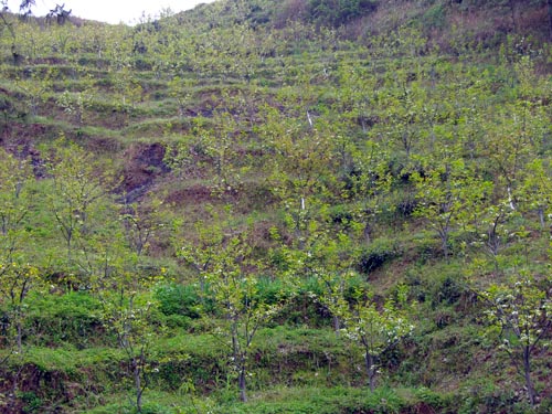 二是增加了群众收入。充分利用地方资源优势,使之转化为经济优势是我县“长治”工程始终坚持的一个重要目标。各小流域在治理中,充分利用各自的农业资源优势,积极发展市场需要的多种经济林果。几年来重点治理小流域内共栽植经果林8079.2hm2,人均经果林面积由治理前的0.05亩上升到0.28亩,取得了显著的经济效益。