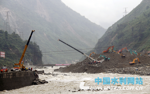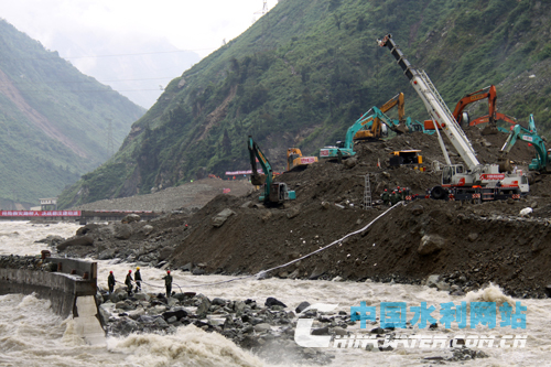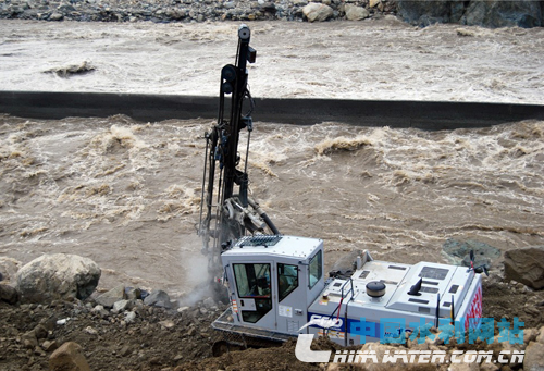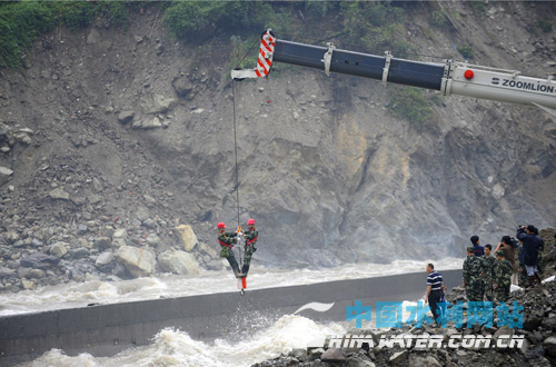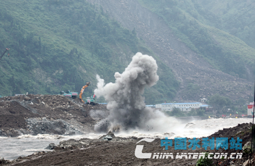 将爆破组人员运送到河道中央损毁的防洪堤,布置爆破点