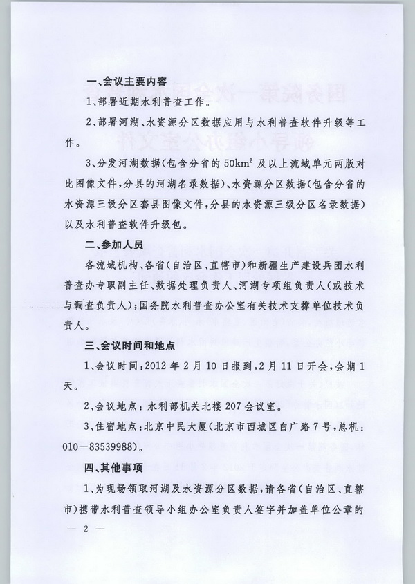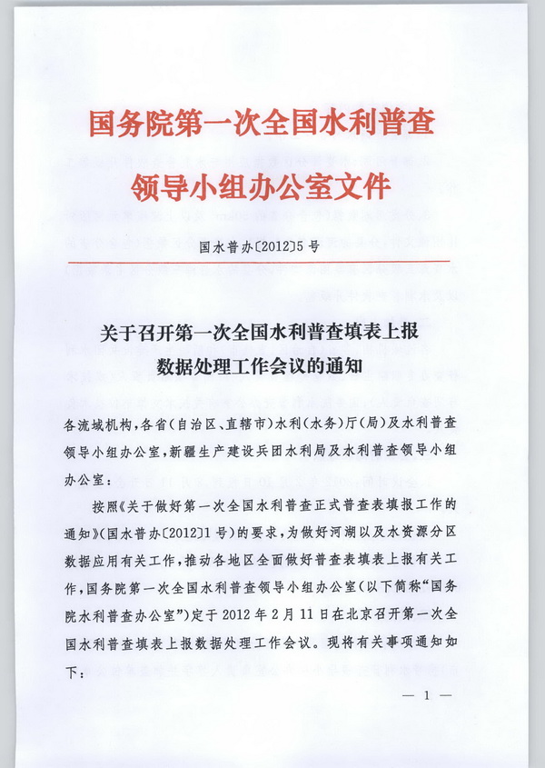 关于召开第一次全国水利普查填表上报数据处理工作会议的通知