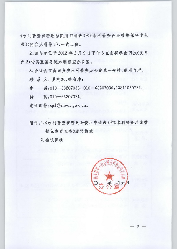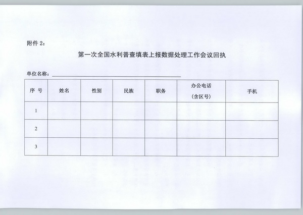 附件2:第一次全国水利普查填表上报数据处理工作会议回执