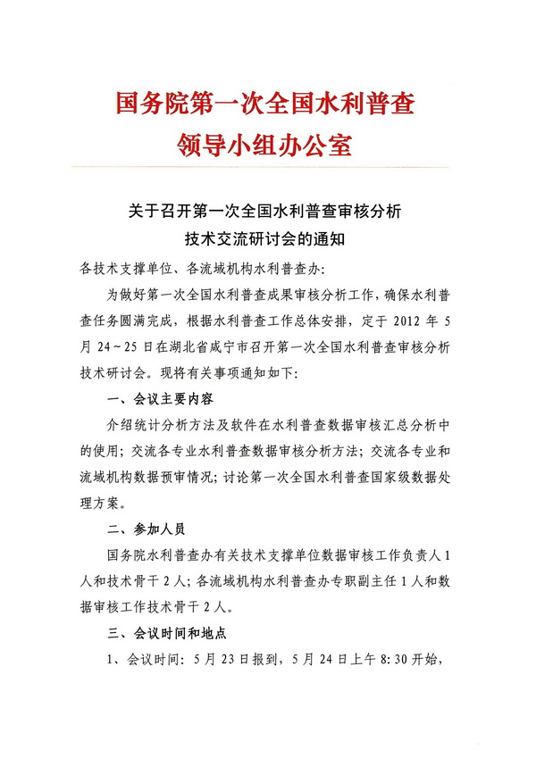 关于召开第一次全国水利普查审核分析技术交流研讨会的通知