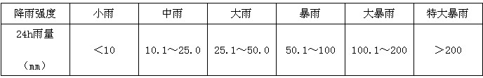 (1)降雨历时和降雨时间:降雨历时是指一次降雨的持续时间,即一场降雨自始至终所经历的时间。降雨时间是指对应某一降雨量而言的时段长,在此时间内,降雨并不一定是持续的。降雨历时和降雨时间均以min、h计。