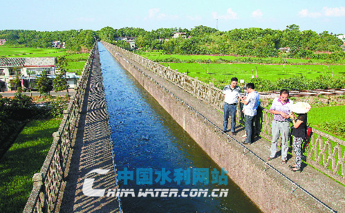 湖南省韶山灌区从洋潭水库引来的水沿渠奔赴干渴的农田