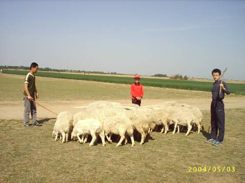 2004年五一节期间,程骏夫妇带着正上初中的孩子去河北贫困农村访贫问苦、体验生活、接受教育。孩子还有感而发连夜写出议论文《可怜天下父母心》。图为他们的孩子和当地少年一起牧羊。