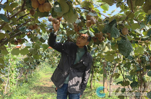 眉县横渠镇村民李伟春在管护猕猴桃果园