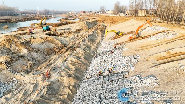 机器轰鸣,车辆穿梭。小清河分洪区建设项目施工现场,寒冬挡不住建设的热潮。河道清淤、格宾石笼护坡等作业正如火如荼地进行。