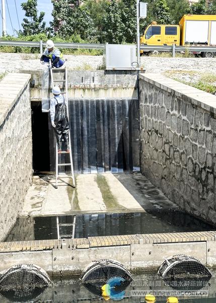 “这是我们为了减少雨后河道散发异味安装的防臭帘,可以将臭气拦截在排口内。”8月28日,在丰台区凉水河岸边,北京市排水管理事务中心公共服务科副科长崔克力指着正在挂装防臭帘的凉水河入河排口说。