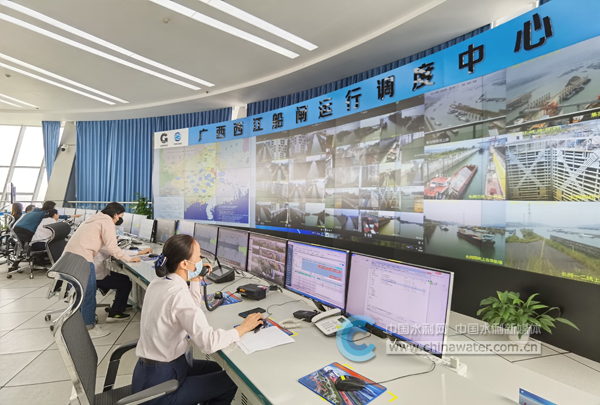 广西西江船闸运行调度中心内,工作人员正在进行船舶调度工作 本报记者 杨晶/摄