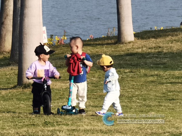 在苍海旁嬉戏玩闹的儿童。 本报记者 张灯林/摄