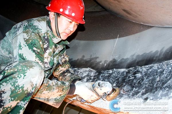 叶奎成正在处理叶轮外壳气蚀部分 徐进 摄