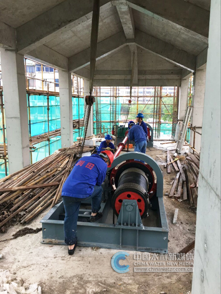 张家浜西闸大修工程启闭机安装现场