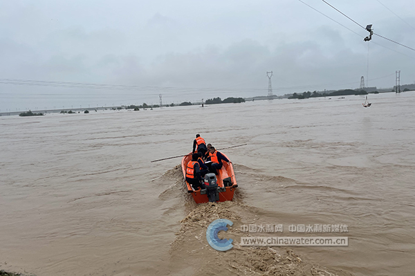 临潼水文站工作人员乘冲锋舟测量水流流量
