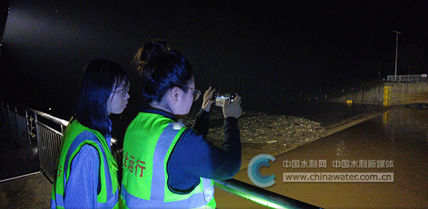 遇仙河挡水闸工程管理站工作人员正在记录实时水位