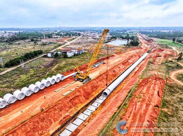 环北部湾广东水资源配置工程是国家水网骨干工程、国家150项重大水利工程之一,总投资超600亿元。截至目前,已完成投资182亿元,完成隧洞掘进160公里、管线施工185公里,全线23条支洞全部贯通,5座大型泵站加快建设。图为1月27日,工程D2标管线施工现场,起重机铁臂起落,精准“抓”起管道,缓缓移至预定位置。(本报通讯员 刘兵 摄)
