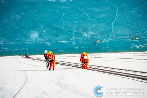 新疆大石峡水利枢纽工程正抢抓春季施工黄金期,高效推进关键节点任务。新疆大石峡水利枢纽工程是国务院确定的172项节水供水重大水利工程之一,大坝高达247米,是目前世界上最高的混凝土面板堆石坝。工程总装机容量75万千瓦,计划今年全面完工。图为施工人员在近70度的大坝坡面检测混凝土面板施工质量。