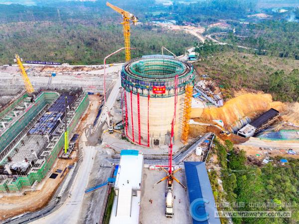 12月6日,环北部湾广东水资源配置工程控制性工程廉江泵站高位水池封顶。