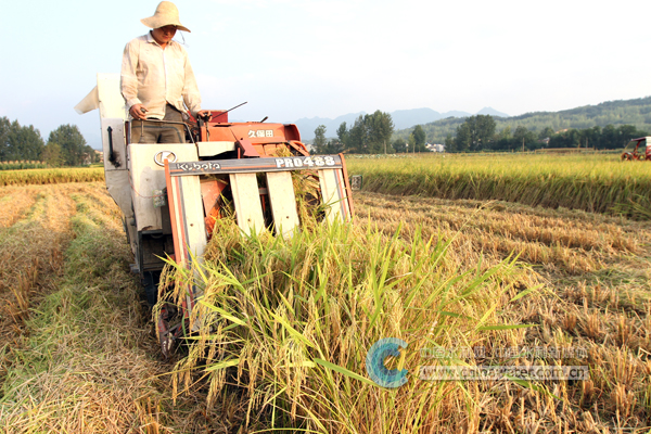 中国水利网站9月4日讯 (特约记者 张启龙 通讯员 唐雪松)2019年9月2日,湖北十堰市房县军店镇月明村灌区金黄色的稻穗压弯了稻杆,农民正忙着机收水稻,丰收的喜悦之情回荡在广袤田野。今年,当地遭遇夏秋连续大旱,由于六大万亩灌区水源工程、节水渠道配套,全县12.5万亩水稻再次成功挑战干旱持续时间的长度,大大提高了稻谷结实率,平均亩产水稻达600公斤以上。目前,全县水稻丰收已成定局,收割工作已经开始,水利工程刷写了水稻实现连续10年丰收的历史纪录。