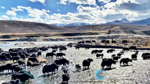 318国道旁牦牛群悠然散步(海瑞星 摄)